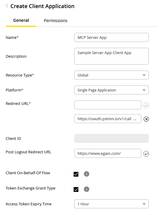 - Client On-Behalf-Of Flow: Select this checkbox to allow the client application to request tokens on behalf of a user or customer so the app can call APIs using their identity without requiring additional authentication.