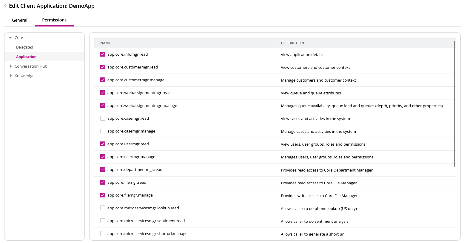 - Navigate to the Permissions tab for your client application.