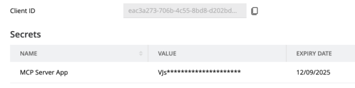 Important: A Client Secret is only displayed once upon creation. Copy it and store it in a safe and secure location.